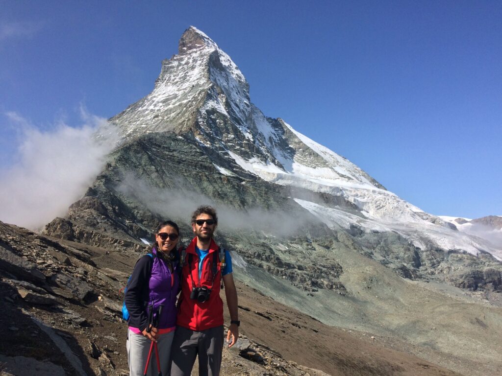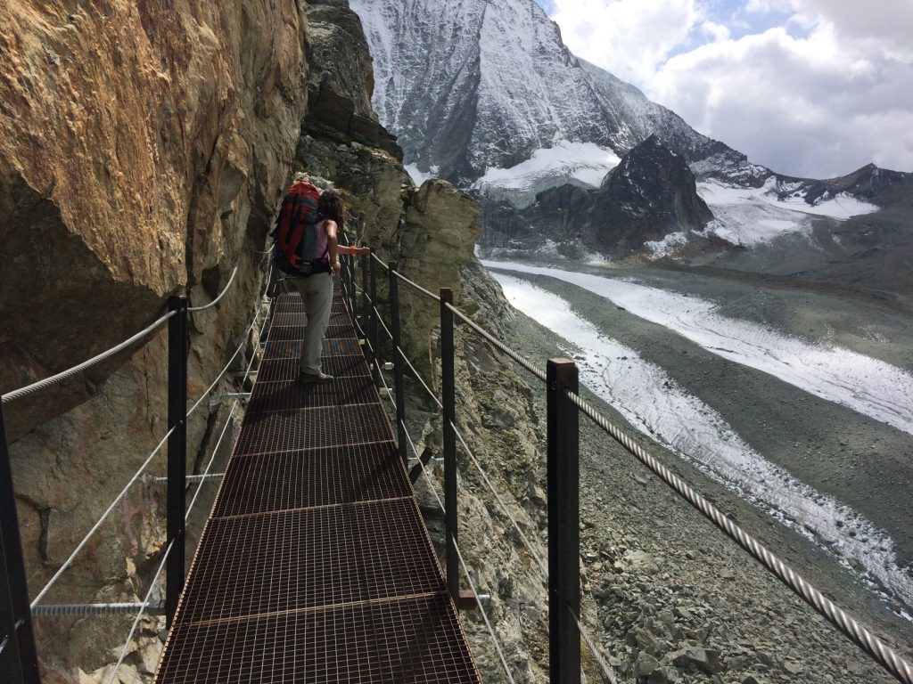 Zermattan Matterhorn’a ulaşmak için bir teleferik yolculuğu yapıp hafif-orta zorlukta bir yürüyüş ile Matterhorn dağevinin olduğu yere ulaşmamız gerekiyordu. Teleferik fiyatları biraz pahalı olduğu için teleferiğin bir istasyonunu yürüyüp diğer istasyondan daha uygun fiyata bindik. İsviçre de olmak bana cimrilikte seviye atlattıJ Burada da eşsiz manzaralar eşliğinde güzel bir yürüyüş yapıp Hörnlihütte ulaştık. Bu güzel manzara ile kahve pasta keyfi yapıp yürüyüşümüzün son noktasında olmanın keyfini çıkarttık.