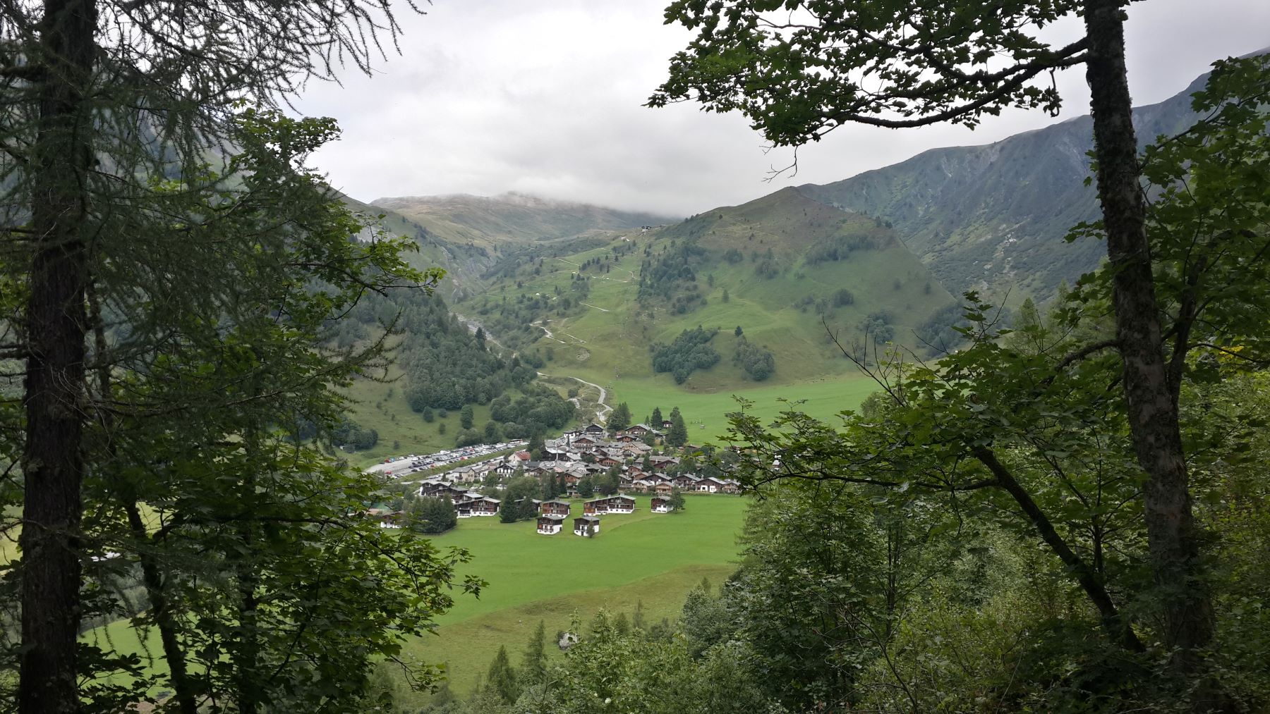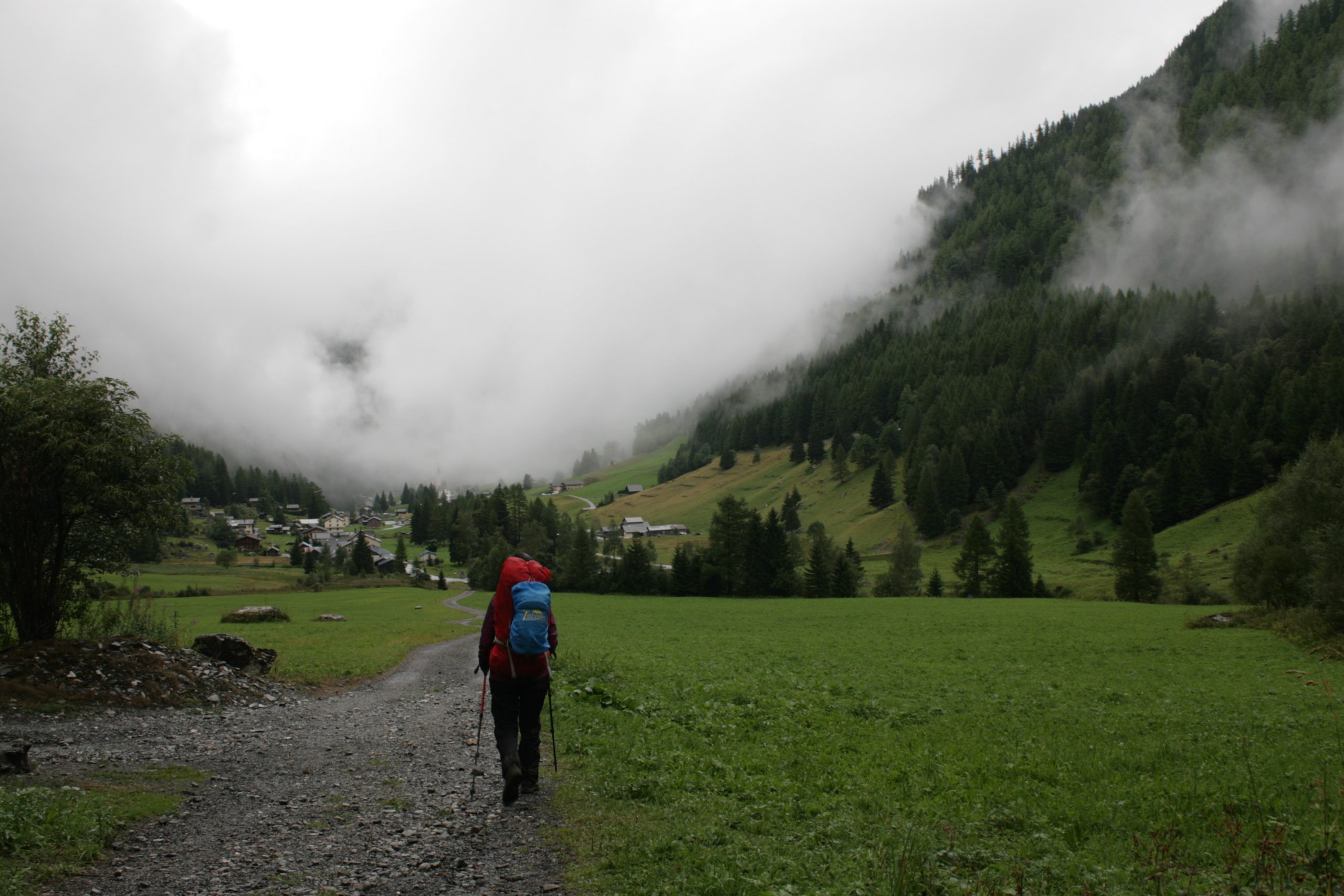 Gruben’den sabah erkenden yola koyulduk, genelde vadiler geç saatte güneş aldığı ve gece çiğ yağdığı için her zamanki çadırı ıslak toplayıp yola koyulduk. Öğlene doğru güneş alan bir dere kenarında hem biraz mola verdik hemde çadırımızı ve nemli kıyafetlerimizi kuruttuk. Güzel bir manzara eşliğinde dik bir iniş başladı. 1800 metrelere indiğimizde bizi harika bir vadi manzarası ve teleferik istasyonu karşıladı. Teleferik oldukça yoğundu bizde pek anlam veremedik ve inişimize devam ettik. Ancak bir süre sonra farkına vardık ki bu iniş gerçekten çok dik ve taşlı. Bu nedenle parmak uçlarımız ve diz kapaklarımız oldukça zorlandı. İnerken gene kamp atılabilecek bir yer bulamadık ve kasabaya kadar indik.