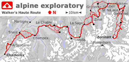Haute Route Mont Blanc dağının eteklerinde yer alan Chamonix kasabasından başlıyor ve ünlü Matterhorn dağının bulunduğu Zermatt kasabasında sona eriyor.