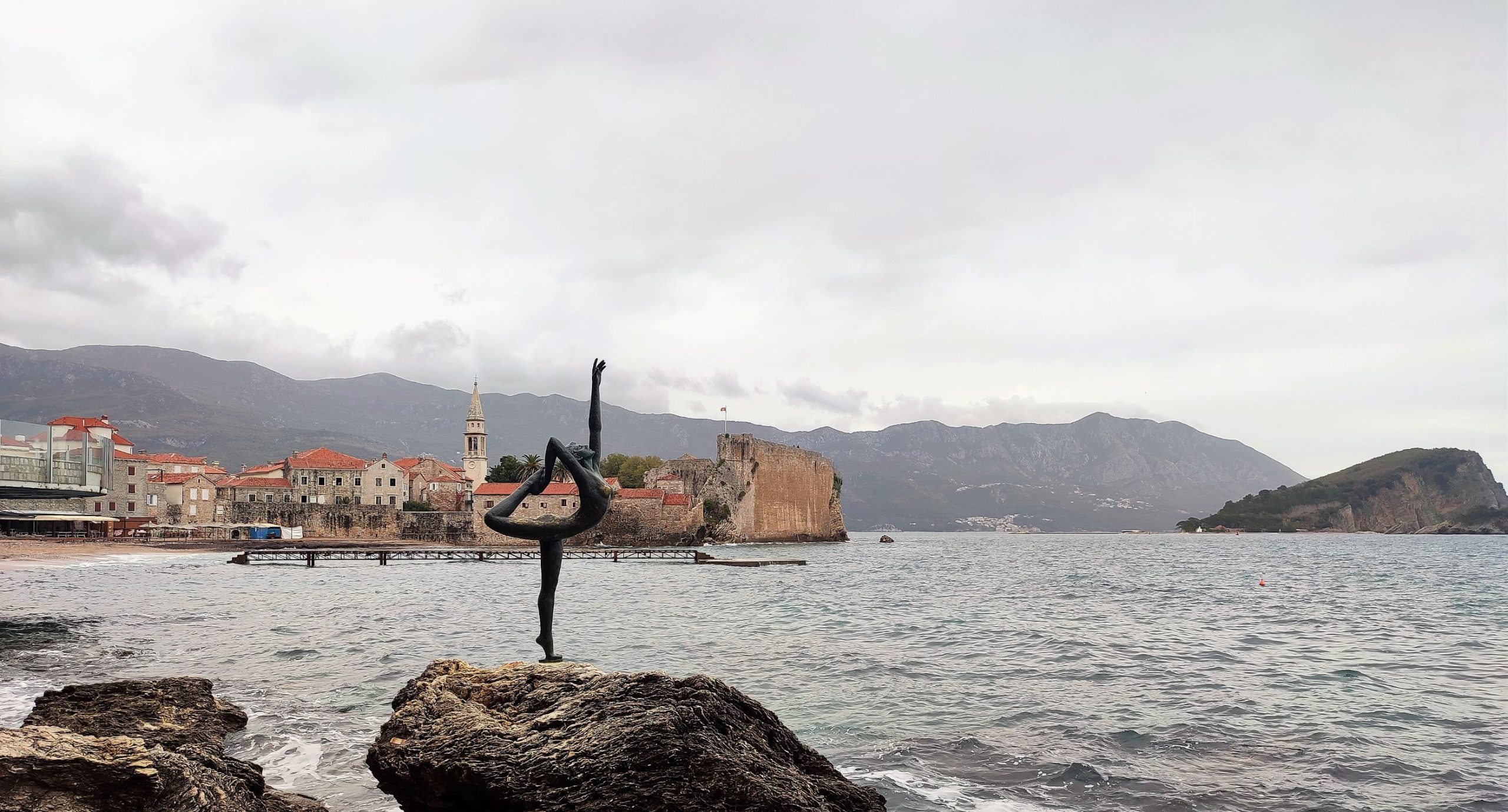 Mogren Beach’e doğru giderken karşınıza çıkan bu heykel, arka plandaki Budva Kalesi ve Sveti Nikola Adası ile birlikte oldukça güzel görünüyor.